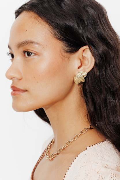 Elles sont simples. Originales. Faciles à coordonner avec toute la collection. Jour & nuit, on choisit ces boucles d'oreilles en forme de 3 pétales en métal gravé, couleur dorée. Parfaites avec une veste de tailleur, une robe noire, un t-shirt ou un sweat. Taille unique. Pour oreilles percées uniquement. Belle idée-cadeau.
