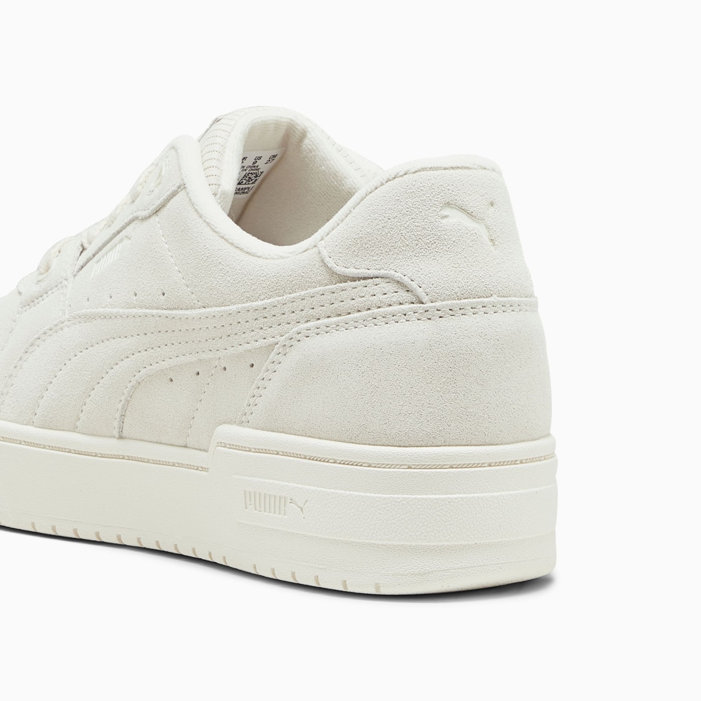 - Textile tongue with suede label and debossed and printed pumthta branding