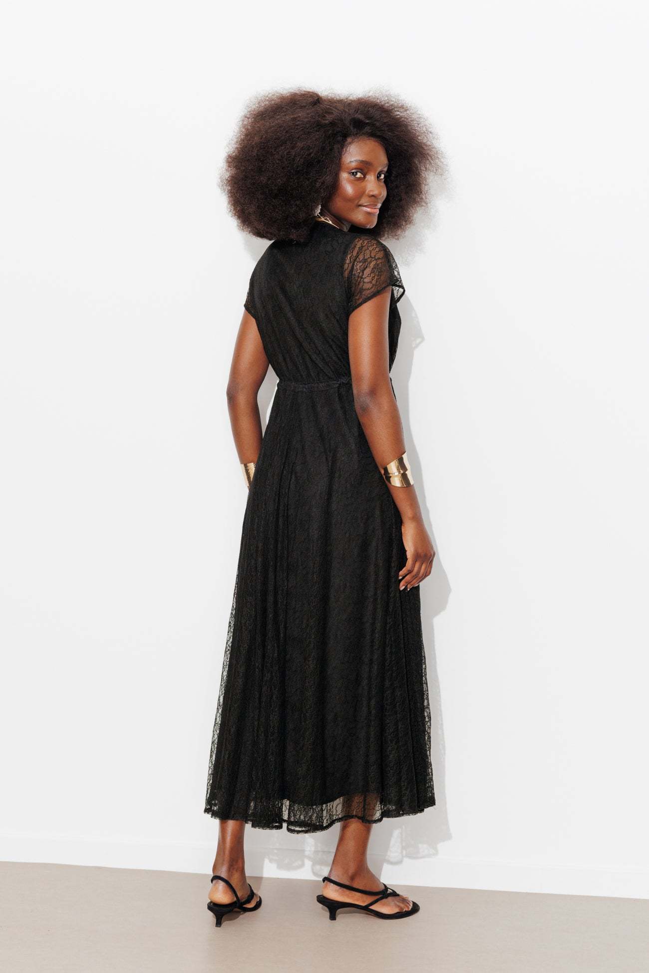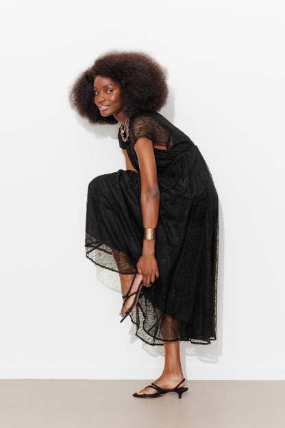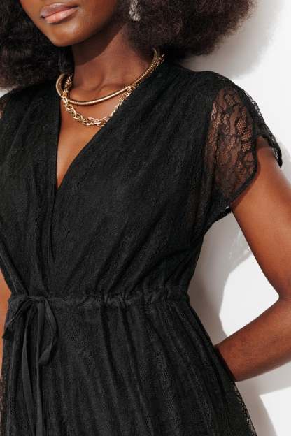 Dansante. Gothique. Romantique... La robe longue ELEONOR en full dentelle fait de nous des héroïnes ! Focus sur les bons détails : décolleté V croisé avec baby-pression, fronces sur les épaules, manches courtes ondulées, lien coulissant à nouer sous la poitrine, tombé fluide Coupe très évasée sous la taille Empire. Base arrondie. Robe entièrement doublée. Cette robe femme contient des fibres recyclées.